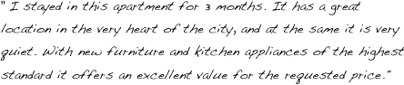 “Savoye Business Flat is the best place I have ever stayed. Living out of a suitcase, this place has it all. Great location, spacious living room & bedroom, large flat screen TV with cable, wireless internet, and fully equipped kitchen. A place where I called home while in Europe. But the best part of all this is the landlord Luc Maris. He's is an extremely caring, responsive, and attentive landlord who is constantly improving the apartment. If you want a great place to feel at home, quiet while in the center of Leuven, and an excellent landlord, this is the place.”